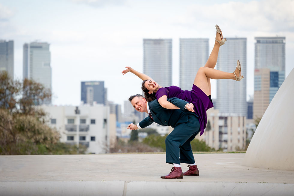 ניצור עבורכם הפקת צילום אורבנית עם להקת רקדני סווינג מקצועיים מבית הספר לריקוד Swing It!